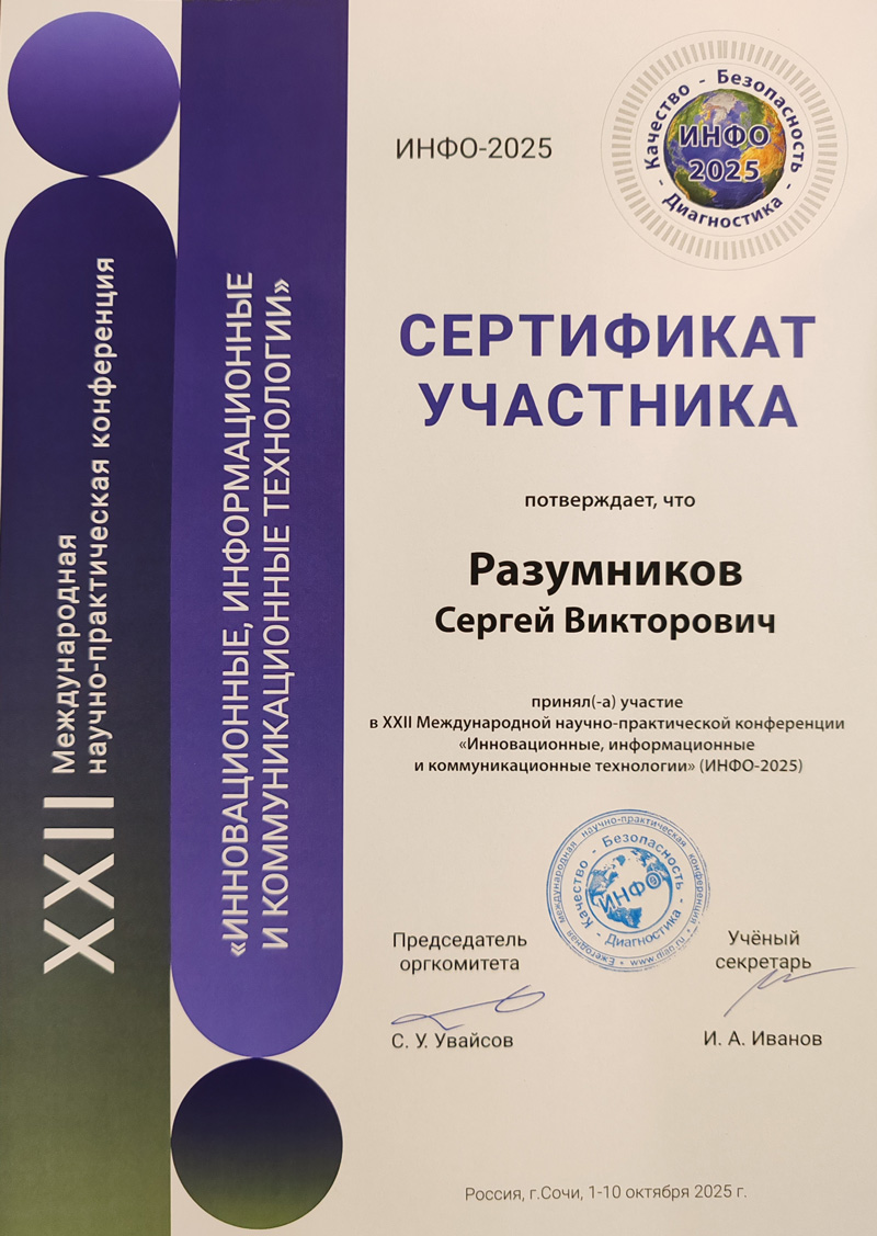 С 1 по 10 октября в городе Сочи проходила XXII Международная научно-практическая конференции «Инновационные, информационные и коммуникационные технологии» на базе Санаторно-курортного комплекса «Знание».